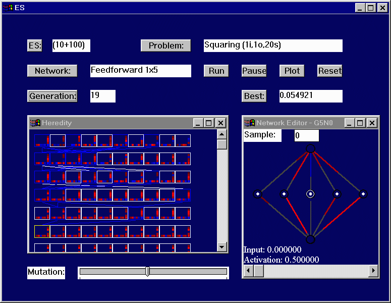 (upper left) network is shown in its graphical form in the "Network Editor"