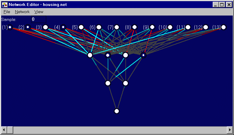 Description: The purpose of this problem was to predict the average retail value of houses in a development given 13 attributes, including average number of rooms, accessibility to highways, and property tax rates. The data were drawn from actual Boston-area housing developments (Harrison78). Training Set: 200 instances Test Set: 506 instances Network: 13 inputs; 1 hidden layer of 4 nodes; 1 hidden layer of 2 nodes; 1 output. Sigmoid activation functions for hidden layers; linear activation functions for inputs and outputs. ES: (10+100) Generation: 6488 Training Fitness: 0.061495 Test Fitness: 0.089019 Comments: The given network well on both the training and test sets. The fitness scores corresponds to predicting the average retail price to within about $3000 and $4500, respectively. |