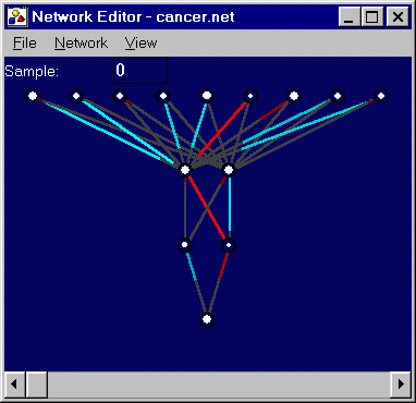 Description: This problem involved the diagnosis of lumps as malignant or benign based on a number of attributes, including proportion of normal nucleoli, epithelial cell size, and mitoses. Training Set: 200 instances. Test Set: 699 instances. Network: 9 inputs; 2 hidden layers of 2 nodes each; 1 output. Sigmoid activation functions for hidden layers; linear activation functions for inputs and outputs. ES: (10+100) Generation: 299 Training Fitness: 0.099739 (96%) Test Fitness: 0.101589 (95.6%) Comments: The network obtains significant convergence on both the training set and the test set. The RMS error is given, as well as the result of a special evaluation function which rounds the output of the network to the nearest available category (malignant or benign), and determines the fraction of instances that the network predicts correctly. Though the results of this special evaluation are given, the networks were trained using the standard RMS fitness score. An attempt was made to train the networks using the specialized evaluation function, but this did not produce better results. The percentages given here are comparable to those obtained by Wolberg using hyperplanes (Wolberg90), and by Zhang (Zhang92) using a variety of instance-based learning algorithms. |