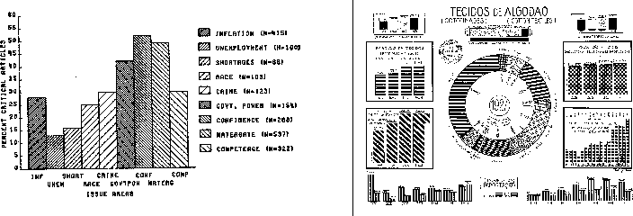 One of the key decisions one makes when designing a visualization is determining how much information to display. This gives rise to two extreme situations. The first, which might be called "gratuitous graphics" occurs when there is very little information to present. Many examples of graphics can be found which convey only 2 or 3 distinct values, such as the percentage of males and females within a particular sample (this actually can be communicated with one number). Others can be found which "pad" the number of pieces of information by deriving additional quantities, such as showing two numbers, their sum, and their difference. In cases such as these it is often more effective to simply display the quantitative values. This requires much less screen real estate (which in many applications is quite valuable) while still getting the message across. It must be remembered that simply because one can create a visualization doesn't imply that one must do so.