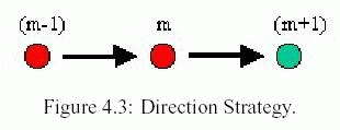 Direction StrategyStrategy S2 (direction) is analogous to the sequential prefetching scheme. This direction strategy assumes that the most likely direction of the next operation can be determined. It is intuitive, for instance, that the user will continue to use the same navigation tool for a while before changing to other one. In our system, each navigation tool of the structure-based brush happens to precisely control one direction only. Based on a user’s past explorations, the predictor would assign probabilities to all the four directions. The prefetching strategy (S2) then is to “prefetch data in the direction” currently with the highest probability. As depicted in Figure 4.3, if (m-1) and m are the last two directions navigated into by the user, then he direction strategy may predict (m+1) as the next direction to be visited by the user in the same direction of the previous two movements.