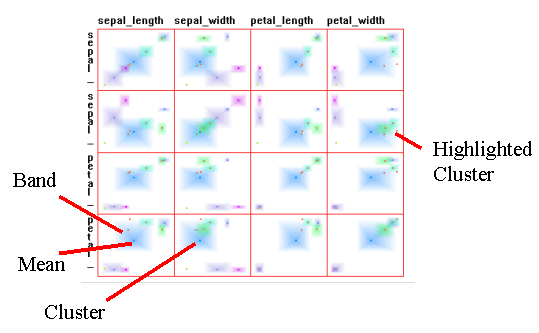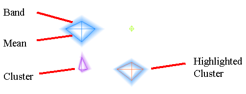 Glyph mode, the minimum and maximum of the dimension clusters are visualized